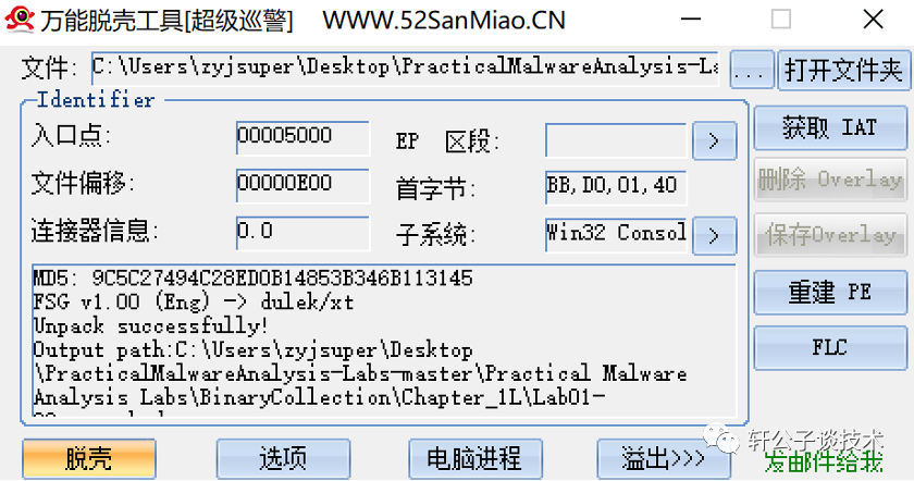尝试脱壳 因为不会使用od脱壳,所以查找脱壳工具,一个一个试