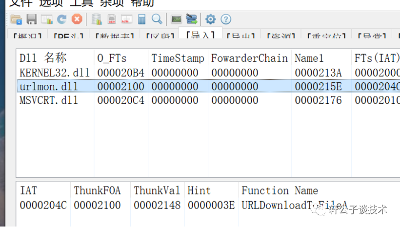 6. 使用Resource Hacker打开exe,然后导出raw格式,放入工具, 查看导入函数 从链接下载文件的功能