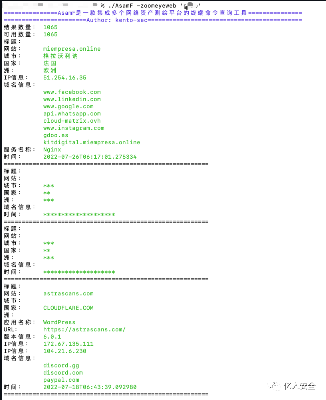 AsamF是一款集成多个网络资产测绘平台的搜索工具