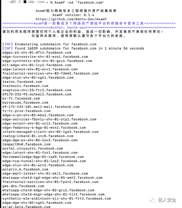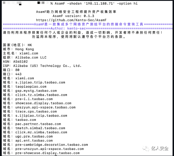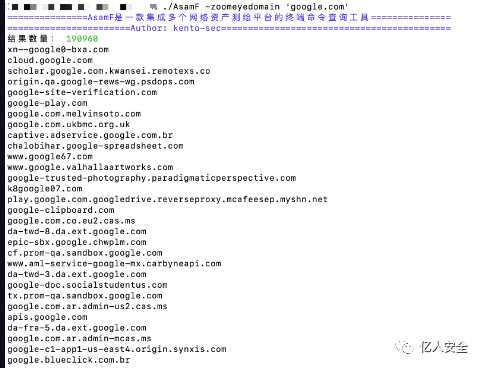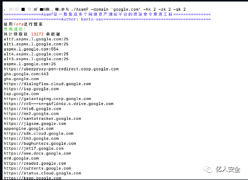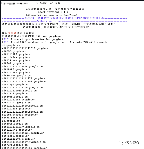 在调用爱企查 -cn -cnf功能将同时会对获取到的企业域名进行子域名收集。需要在配置文件中写入相应的key,不写也可以,结果会少一些。