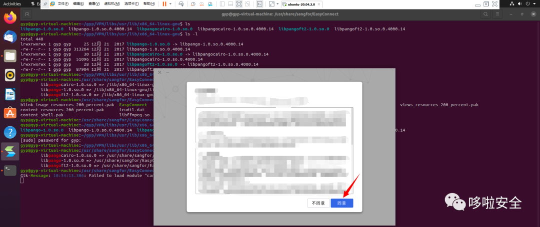 http://kr.archive.ubuntu.com/ubuntu/pool/main/p/pango1.0/安装deb安装包,把解压后x86_64-linux-gnu目录中的文件拷贝到EasyConnect的安装目录