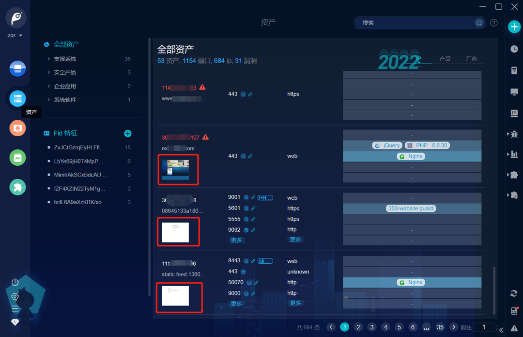 在 Goby 扫描结束后,在资产信息这个界面里,可以看到对应的资产信息及界面截图。可以通过截图情况快速筛查出具有登录界面的资产。