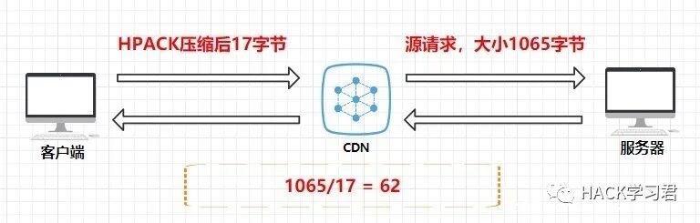 在HTTP /1.x 中,这种攻击的损耗比为 1:1,于是可以采用 HTTP2 复用 http 流来实现减少损耗比,达成放大攻击。