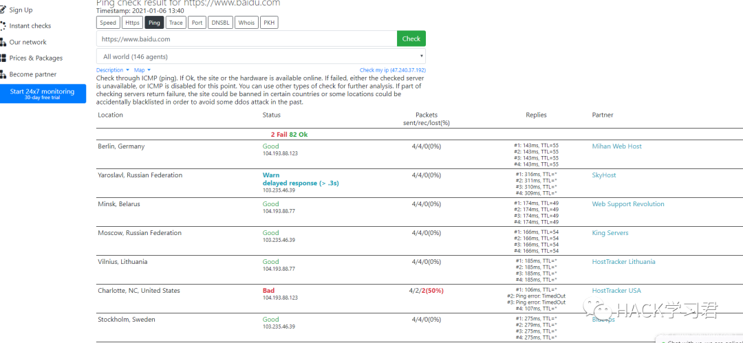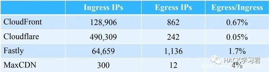 不难发现,大多数CDN厂商的入口 IP 数量远远大于出口 IP 数量,并且在同一个时间区段内,超过90%以上的出口 IP 是同一个,那么现在只需要攻击出口 IP 的 CDN 节点,即可实现出口阻断攻击,将造成单位时间区域内,全球客户端无法访问该节点保护的服务器群。