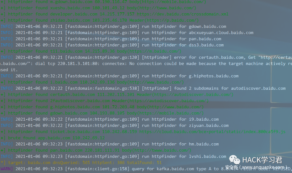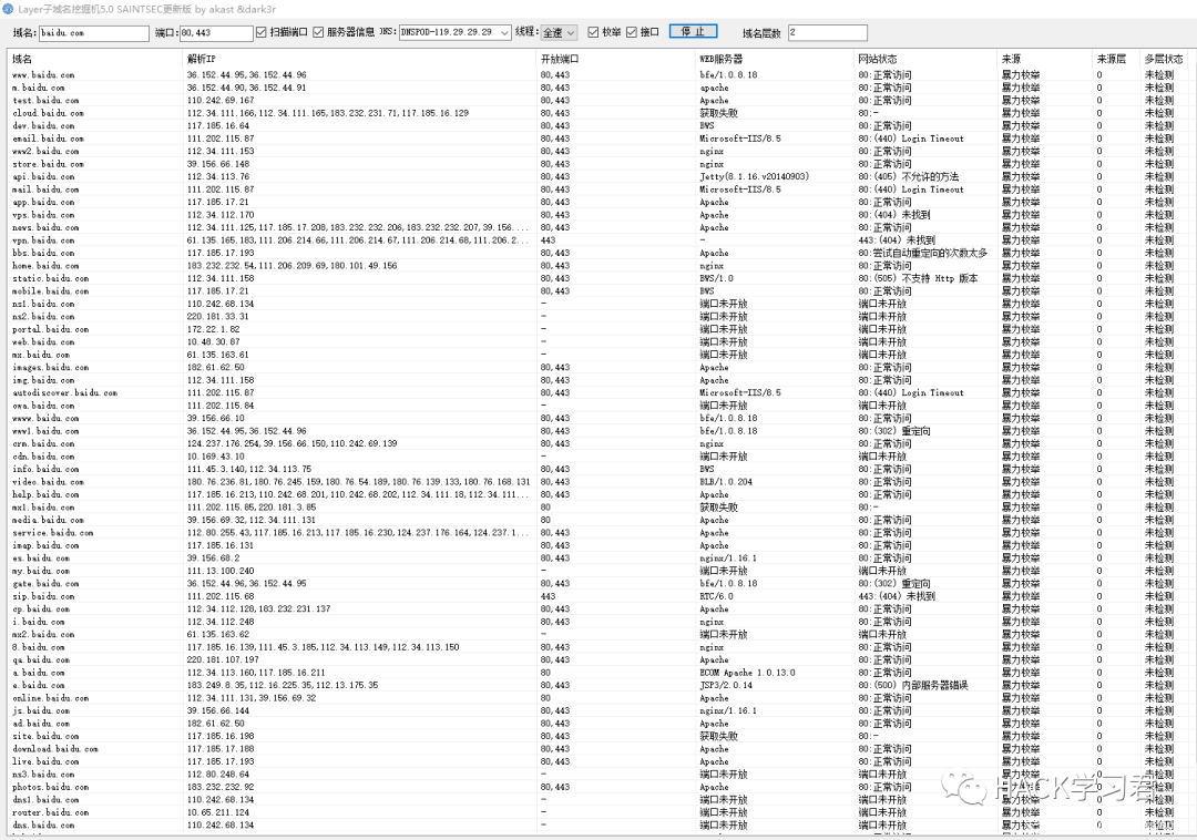 根据网络情况自动剔除无效DNS,提高枚举成功率。
