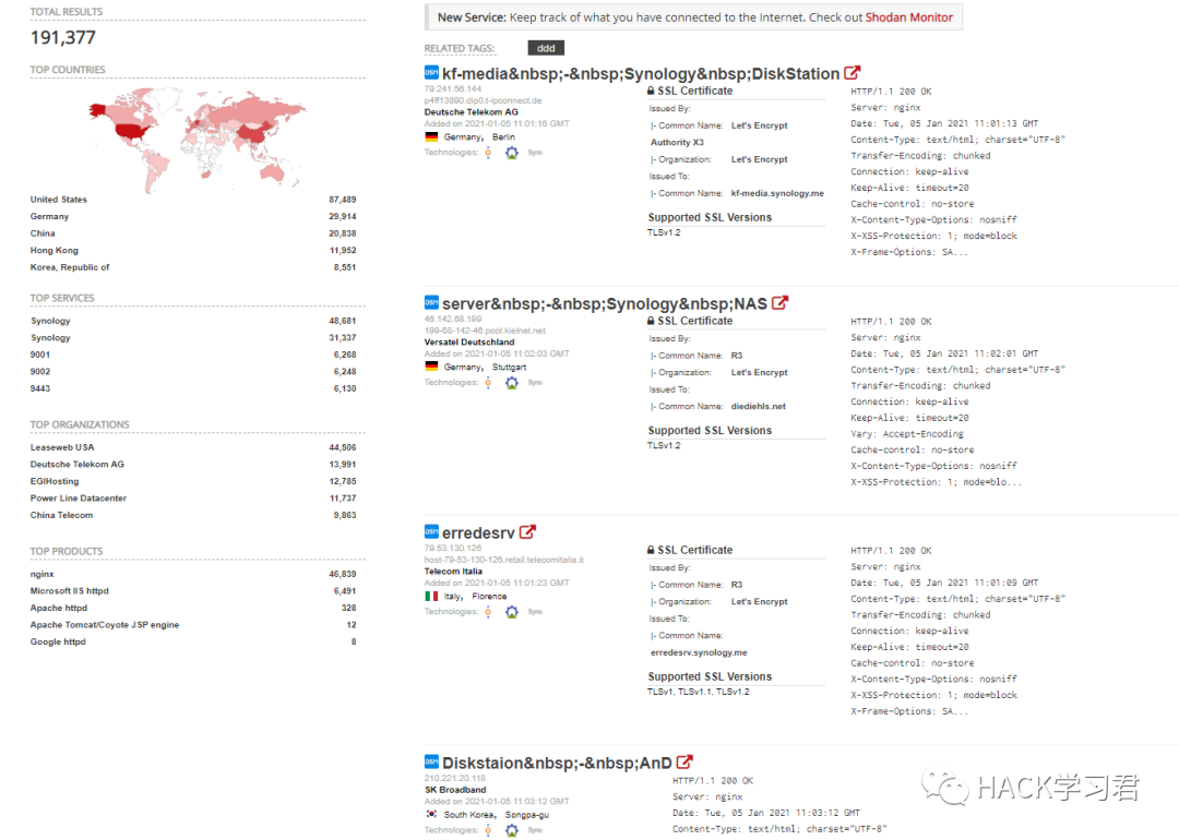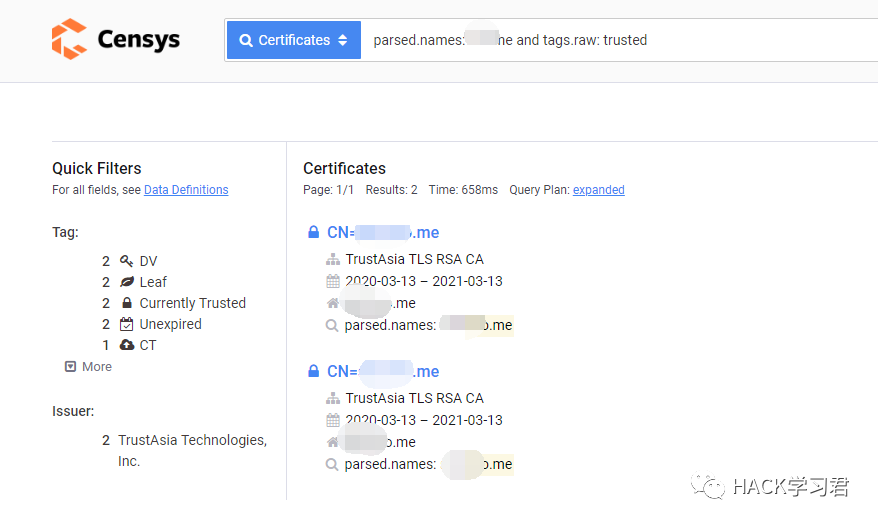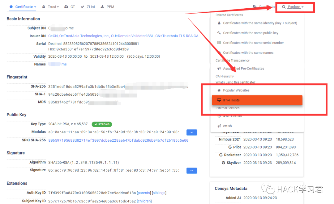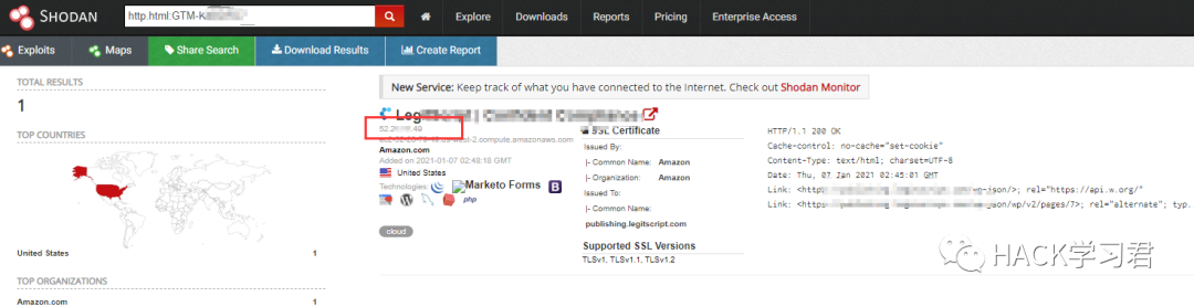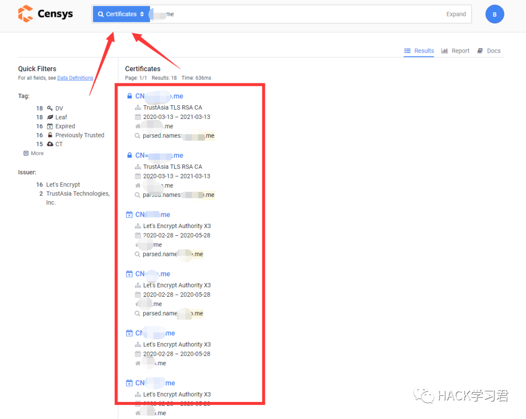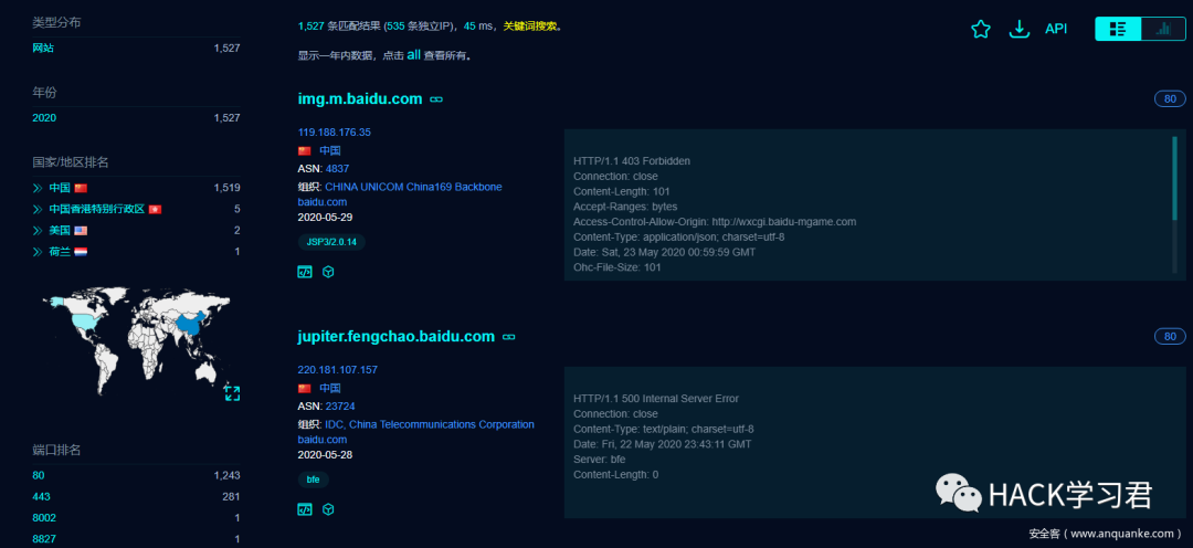 Censys 可帮助安全从业人员发现可从Internet访问的设备,包括 IP 地址、开放端口、物理定位、域名信息、托管服务商、SSL 证书 等等数据,从中发现需要的信息追踪到网站真实的 IP 地址。