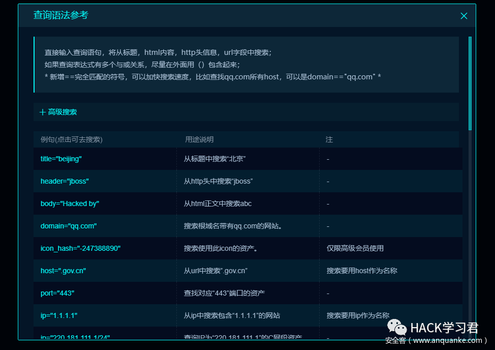 FOFA 可以迅速进行网站资产匹配,加快后续工作进程,如漏洞影响范围分析,应用分布统计,应用流行度排名统计等。FOFA 非常友好,即使免费,也可以查询足够多的数据量,只要你不是商用或者大需求用户,是不需要开会员的。