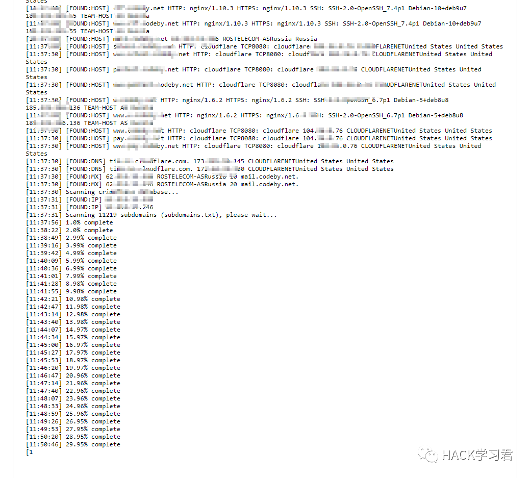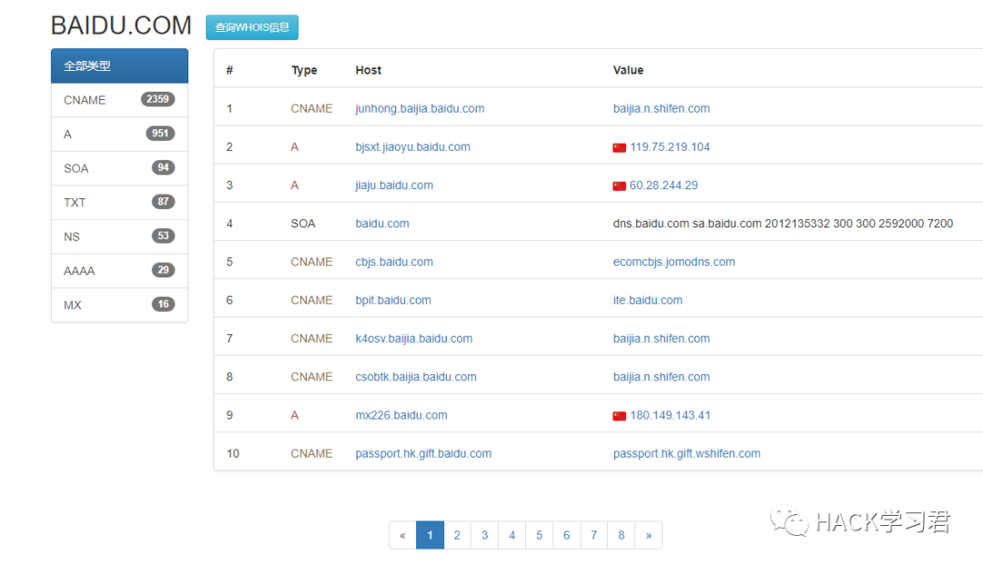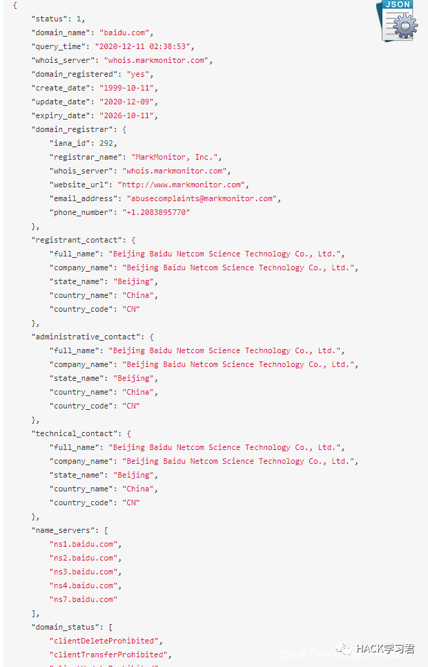 Whoxy 拥有爬取超过 3.65亿个子域数据,该网站 API 调用非常方便,以 XML 和 JSON 格式返回数据。