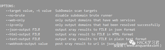 # 扫描单个域名esd -d qq.com# debug模式扫描单个域名esd=debug esd -d qq.com# 扫描多个域名(英文逗号分隔)esd --domain qq.com,tencent.com# 扫描单个域名且过滤子域名中单个特定响应内容esd --domain mogujie.com --filter 搜本店# 扫描单个域名且过滤子域名中多个特定响应内容esd --domain mogujie.com --filter 搜本店,收藏店铺# 扫描文件(文件中每行一个域名)esd --file targets.txt# 跳过相似度对比(开启这个选项会把所有泛解析的域名都过滤掉)esd --domain qq.com --skip-rsc# 使用搜索引擎进行子域名搜索(支持baidu、google、bing、yahoo,使用英文逗号分隔)esd --domain qq.com --engines baidu,google,bing,yahoo# 平均分割字典,加快爆破esd --domain qq.com --split 1/4# 使用DNS域传送漏洞获取子域名esd --domain qq.com --dns-transfer# 使用HTTPS证书透明度获取子域名esd --domain qq.com --ca-info但是实际上我们从源码出发,发现很多功能作者目前并未实现: