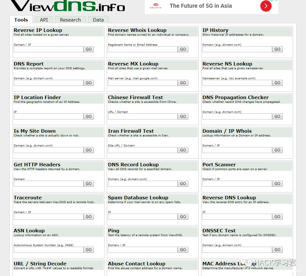 Viewdns 可以说是非常的简洁直观了,就算你不懂任何英文,我相信你也看的懂,至少你知道在哪里输入对吧。响应速度也是非常快了,首页一目了然,集成了超多的查询功能。