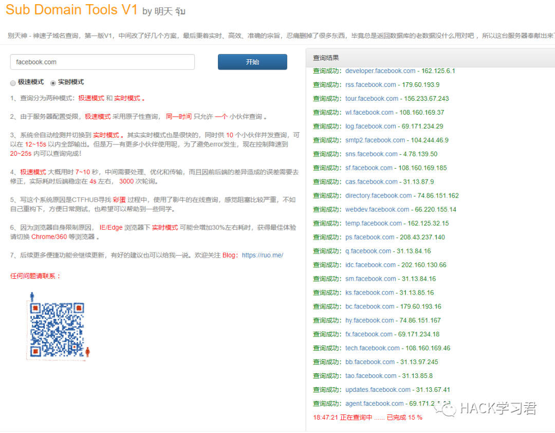 在线子域名查询,支持实时模式和后台模式,不阻塞前端线程,不占CPU,小测试的时候非常方便。