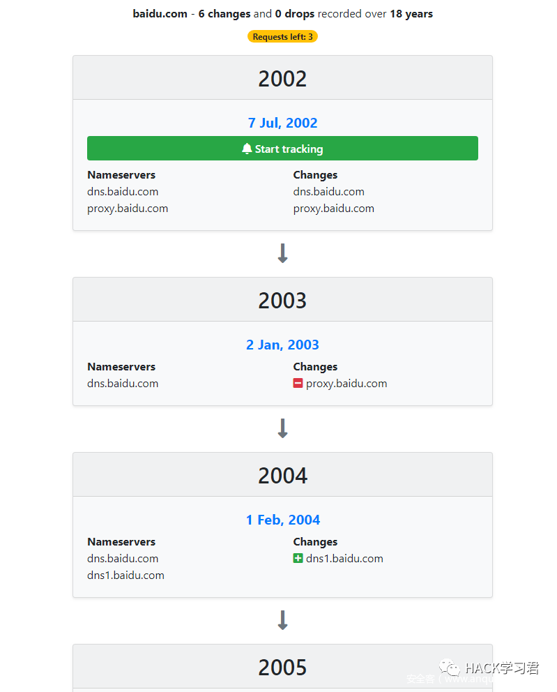 WhoISrequest 这个网站自2002年以来一直在跟踪和记录DNS历史变更,数据底蕴很足。