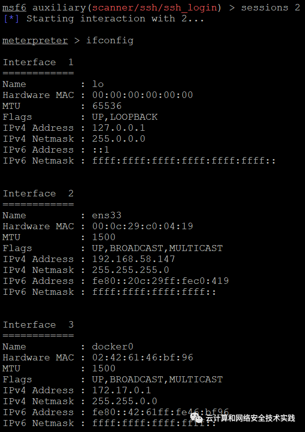 sessions 2,进入shell,发现靶机有docker的网络栈,