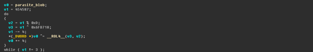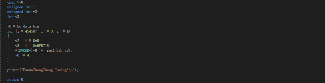 4.笔者自己编写了一个简单的解密程序,用于解密上面的Linux RootKit木马数据,如下所示:
