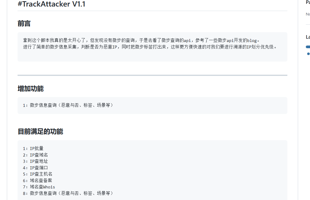 介绍两个小脚本,在溯源的工作中,使用频繁,根据客户的需求来,我在项目上客户要求,不管啥IP,只要有攻击行为就开始溯源。一下子工作量就上来了,每天都拿到大量的IP,项目快结束的时候,直接过来了全部的IP。