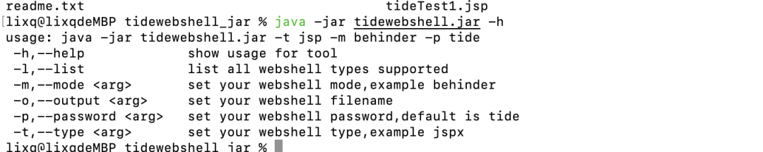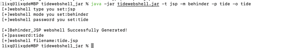 java -jar tidewebshell.jar -m behinder -t jsp -p tide -o tideE