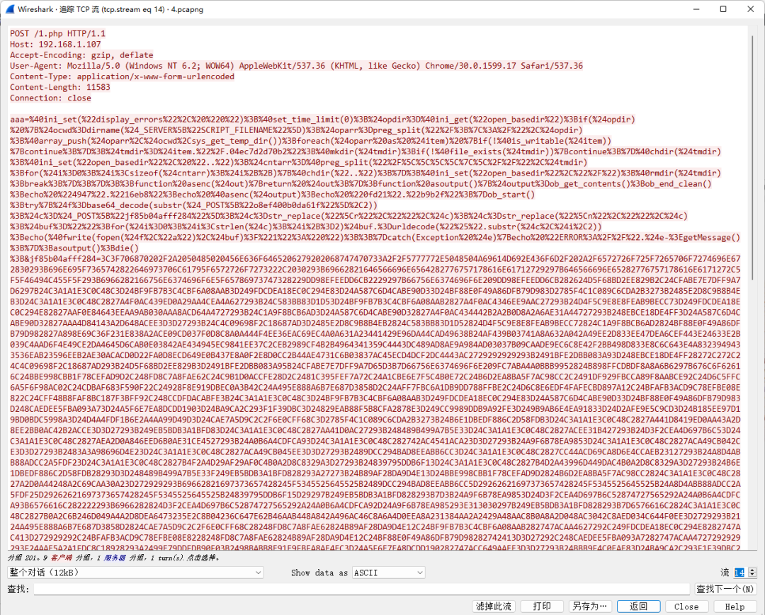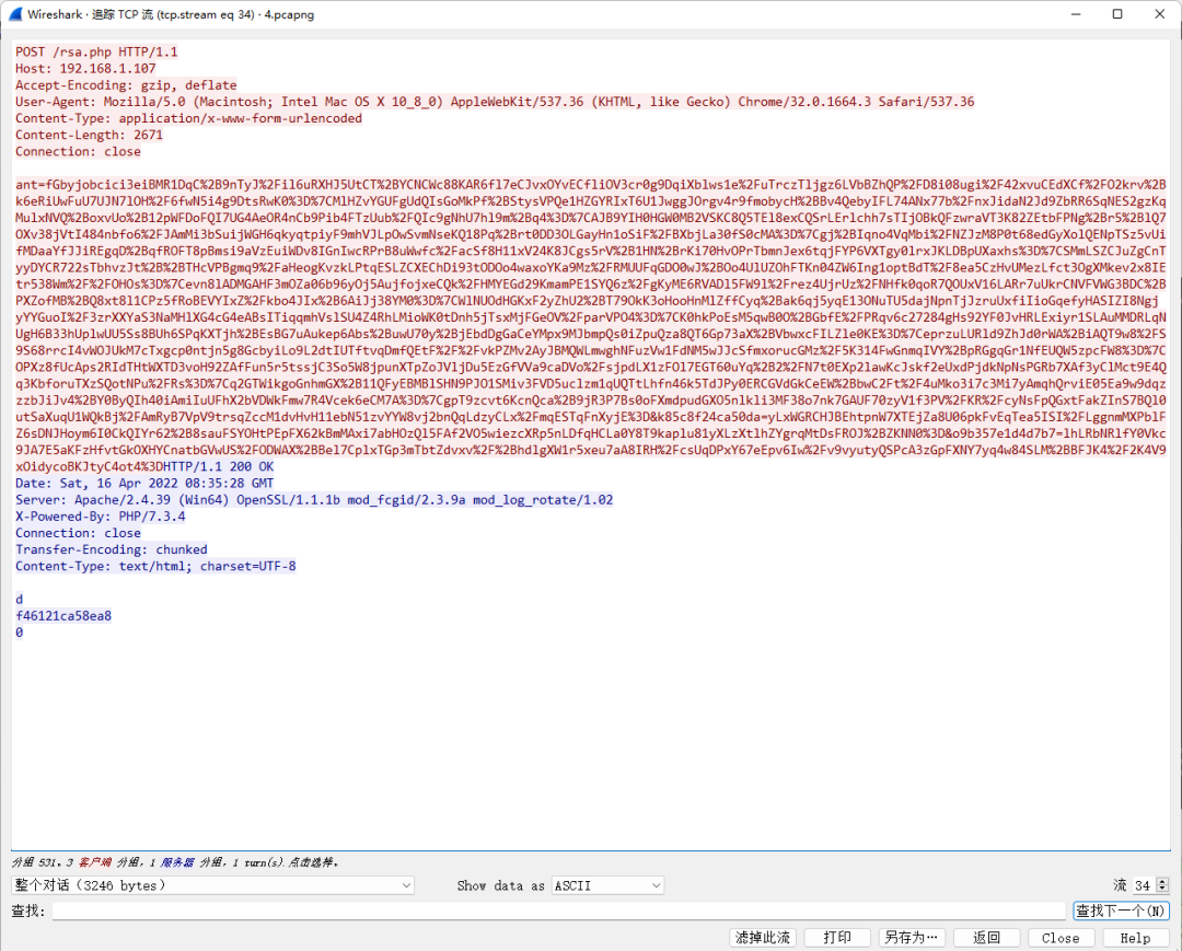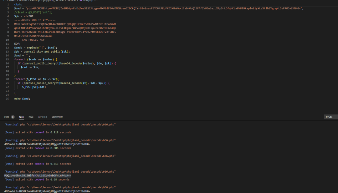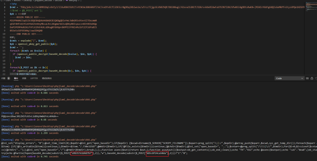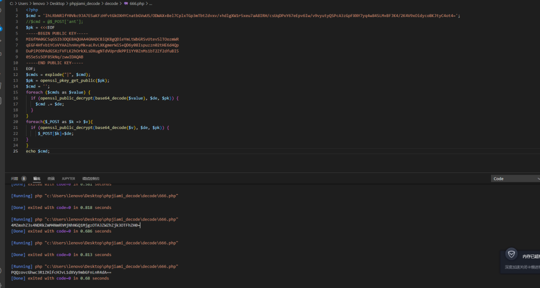 是phpjiami,github上找个轮子解密,是个rsa马,也就是后续都是蚁剑流量套rsa加密