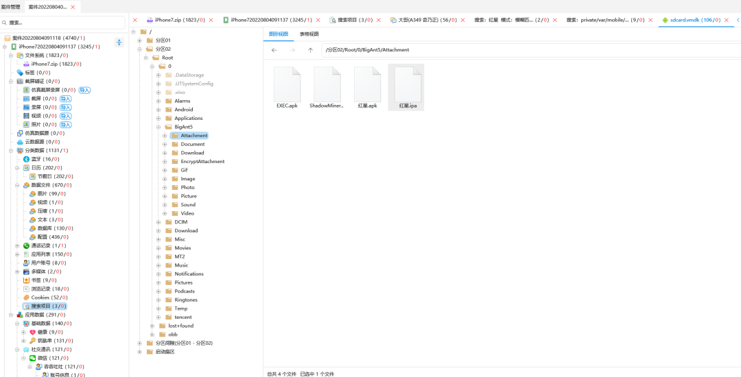 在这里能找到3个apk和一个苹果应用,在受害人手机上、微信聊天里都能找到,但是似乎有点不一样,有的分析不出来,忘记最后用的哪提出来的了,好像是这里