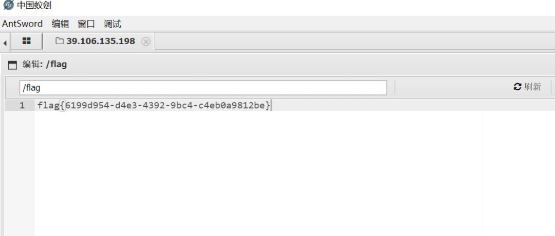 发送payload,即可在ui目录下写入webshell,蚁剑连接即可在/flag读取到flag: