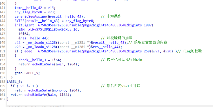 然后分析1987函数,结合整体来分析,其实就是其中一个大数乘flag等于另一个大数,