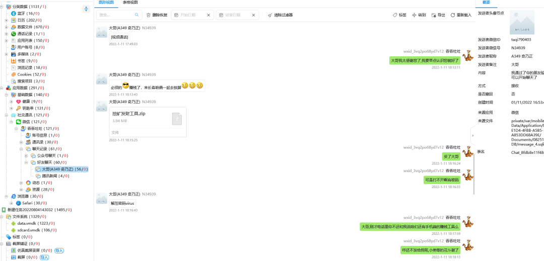 在微信聊天记录里看见压缩包和密码,里面有好几个exe