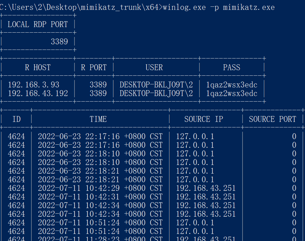 一款基于go的windows信息收集工具,主要收集目标设备rdp端口登录、mstsc远程连接记录、mstsc密码和安全事件中。\HKEY_LOCAL_MACHINE\SYSTEM\CurrentControlSet\Control\Terminal Server\WinStations\RDP-Tcp