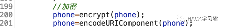 查看源码发现他这里对phone进行了前端加密,首先是通过encrypt加密然后对加密的内容进行url编码。前面的%3D的url解码就是=