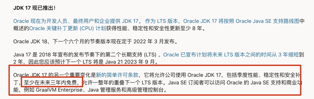 除此之外,在JDK17中还有一项重大改变,那就是免费了!