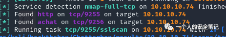9256/tcp open achat syn-ack ttl 127 AChat chat system这里我使用的是 nmapAutomator 工具,它的主要用途是通过 bash 脚本将常用的 Nmap 扫描命令进行补全。很快看到两个端口 9255、9256,使用搜索引擎对端口信息进行了解。