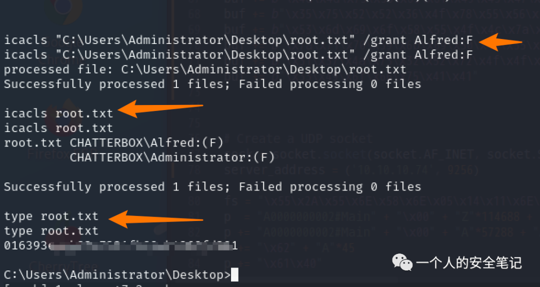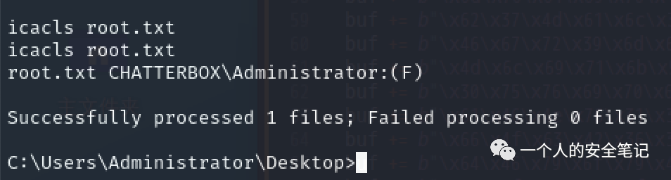 查询用户文件夹及文件发现存在 ACL 控制措施,通过 icacls 命令成功编辑 ACL 列表,成功得到 root flag。