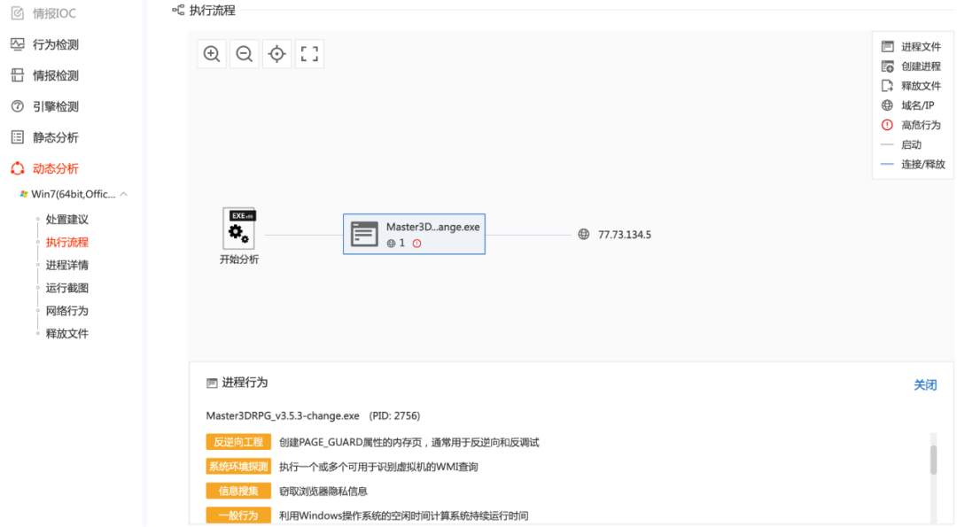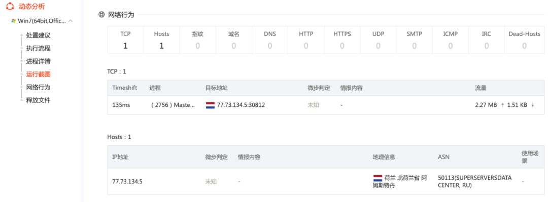 我们再使用微步在线分析,在 Win7 64 bit 分析网络行为: