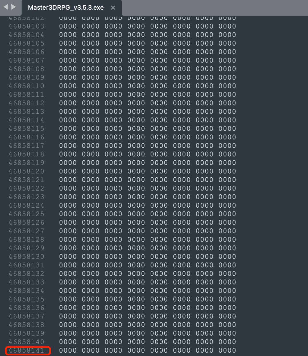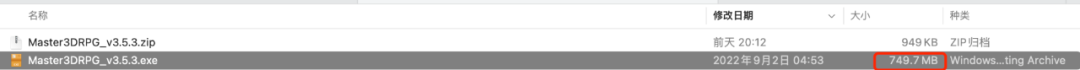 解压后的文件:Master3DRPG_v3.5.3.exe,大小 749.7 M。正常木马文件不会这么大,所以我们用文本编辑器打开看下: