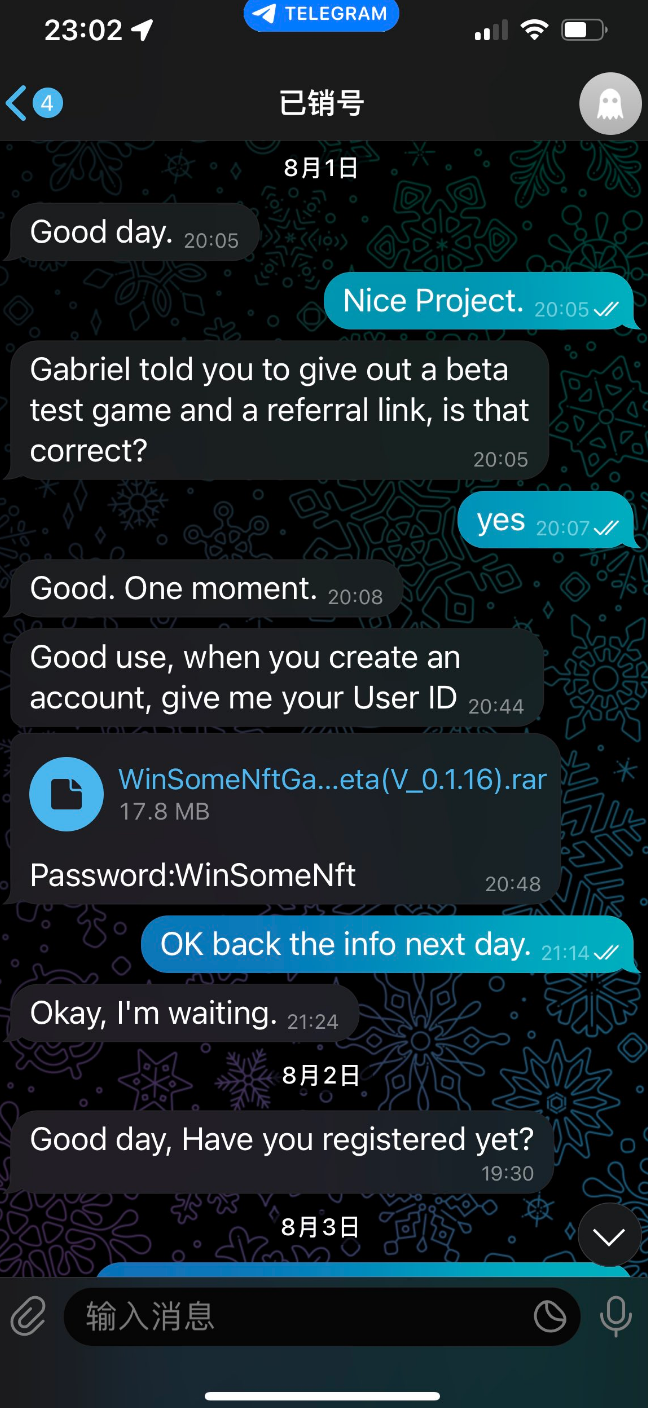 据我们了解,这种攻击主要是通过 Discord 邀请用户参与新的游戏项目内测,打着“给予优惠”等幌子,或是通过群内私聊等方式发一个程序让你下载,一般是发送压缩包,解压出来是一个大概 800 M 左右的 exe 文件,一旦你在电脑上运行,它会扫描你电脑上的文件,然后过滤包含 Wallet 等关键词的文件上传到攻击者服务器,达到盗取加密货币的目的。