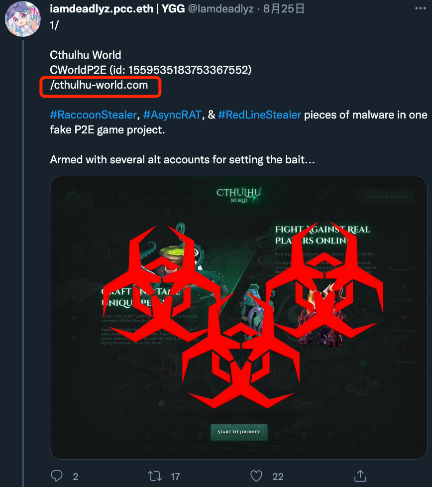 最早这类骗局出现在 2022 年 8 月 1 日,以 WinSomeNft 的项目名称出现: