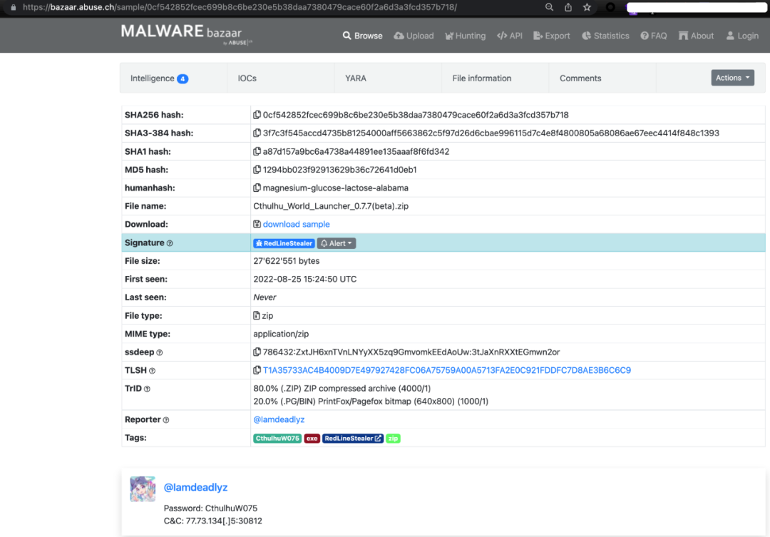 我们再看下木马信息:是 RedLine Stealer 家族木马