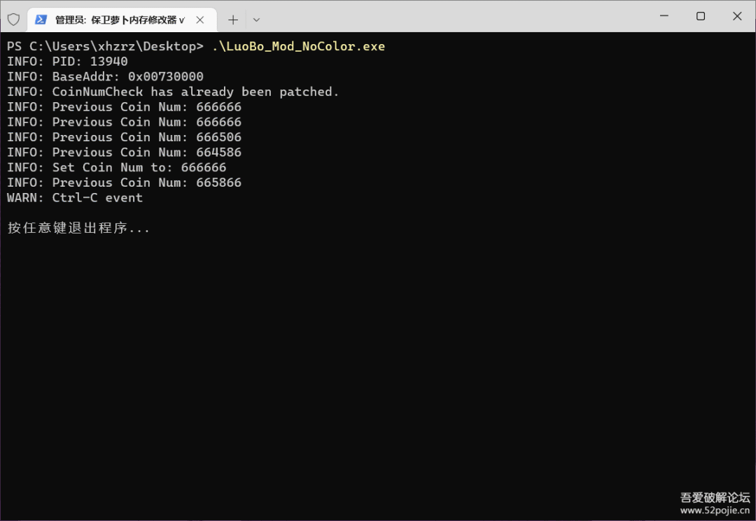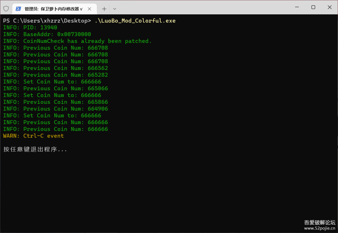 由于金币数实时变动,届时可以把该函数放入循环中,实现不间断的监测和修改。