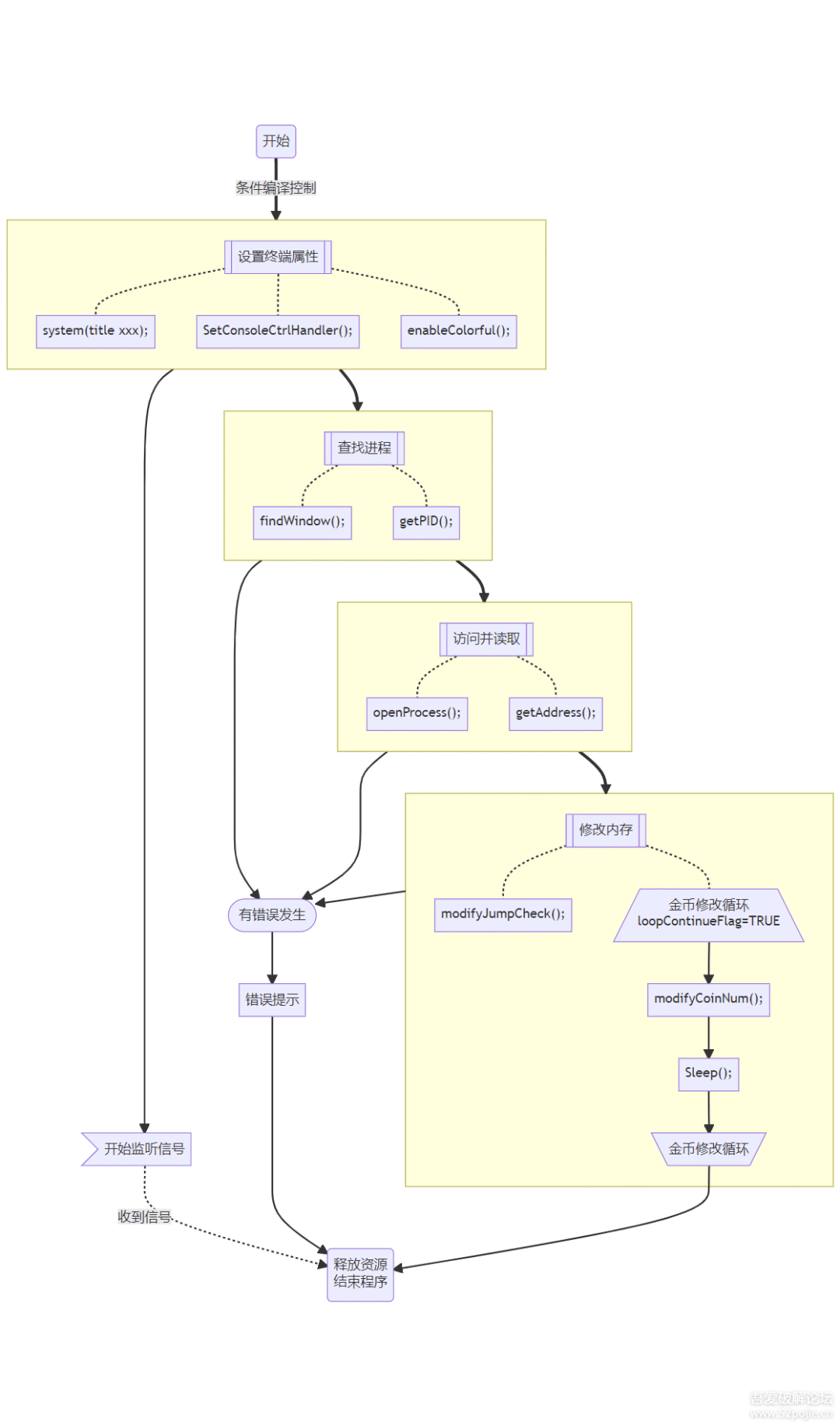 至此,金币校验就被破坏了。由于该内存区域在游戏运行过程中不会被再次修改,所以这里在游戏开始运行时修改一次即可达成目的,可谓“一劳永逸”。