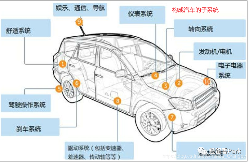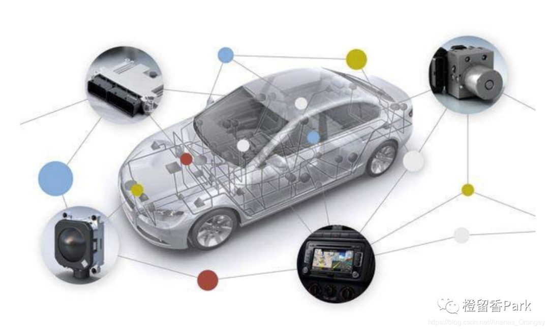 上图中的每个子系统都由单独的或共享 ECU 进行控制,这些 ECU 相互之间又经过汽车内部网络(如CAN)相互连接,共同实现对汽车的整体控制