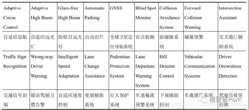 高级辅助驾驶系统(ADAS,Advanced Driver Assistance System):ADAS是在驾驶过程中辅助驾驶员的系统,它的功能包括安全告警功能、自适应控制功能、信息提示功能等,可在通过传感器检测到可能的危险时对驾驶员发出告警或者接管汽车某些控制功能(比如紧急刹车功能),以及根据环境自动对汽车的某些功能进行控制,比如根据环境亮度自动调节车灯亮度、自适应巡航控制、盲点警告、自动变道