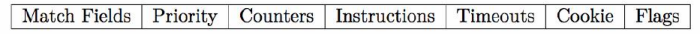 OpenFlow协议属于数据链路层通信协议,最早由斯坦福大学提出并应用于SDN中作为统一控制数据层资源的通信协议,使得SDN控制器能够与硬件之间进行直接交互。经历了十多年的发展和ONF的大力支持,OpenFlow已经成为全世界使用最广泛的 SDN南向接口协议。OpenFlow体系由支持OpenFlow的控制器和交换机以及不断更新完善的OpenFlow协议共同组成,它将数据层抽像出来并构成一个多级流表转发模型。OpenFlow协议允许软件应用程序对不同交换机的流表进行编程。OpenFlow交换机使用流表转发数据包。流表是流条目的列表集合,每个条目都有匹配字段、计数器和指令三个流表项。传入交换机的数据包将与每个条目的匹配字段进行比较,如果存在匹配,则根据该条目包含的操作对数据包进行处理。计数器用于保持有关数据包的统计信息。指令代表交换机对该数据包执行的动作。如图3是一个基本的OpenFlow流结构。