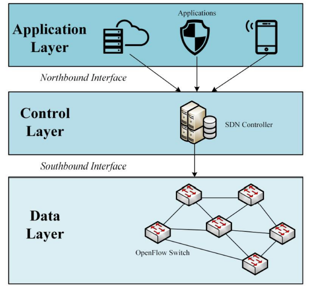 SDN的本质在于控制和转发的分离,具体体现在网络设备的软硬件解耦、控制层与数据层解耦。基于统一的全局网络资源视图和对网络资源进行抽象的南北向接口,提供了整体网络可编程性,从而使得SDN拓宽了很多领域的问题解决方案。有效实现了网络资源的抽象隔离,解决了网络资源冲突,提高了网络资源分配效率。