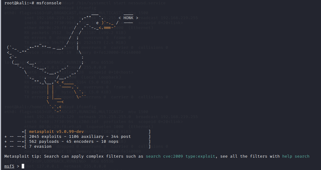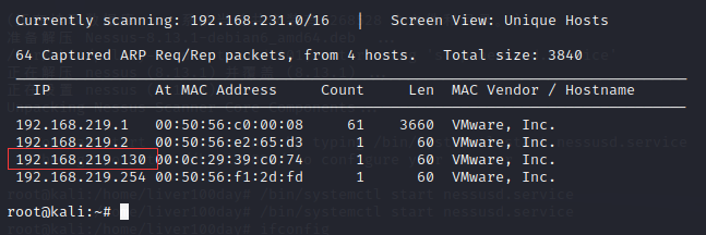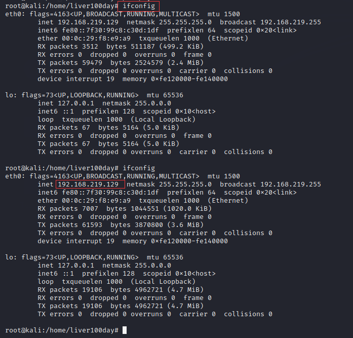 查看如图:可以看到,kali的IP地址为192.168.219.129