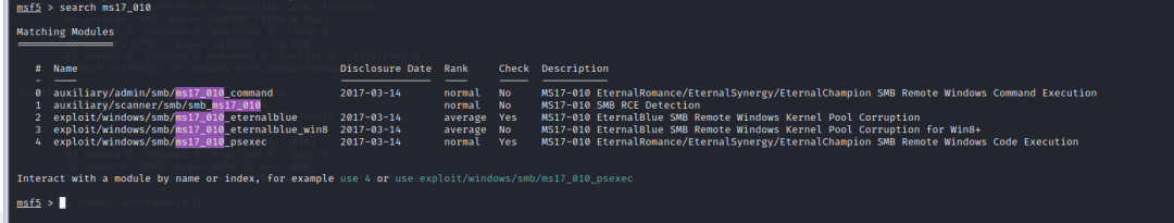 如图:出现以下界面则表示启动成功2.搜索ms17_010: