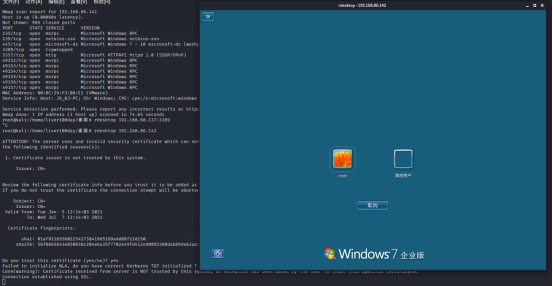 rdesktop 目标的ip地址进行远程连接,用户名和密码为刚才新建的test用户顺利弹出远程连接窗口,输入账号密码