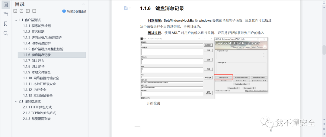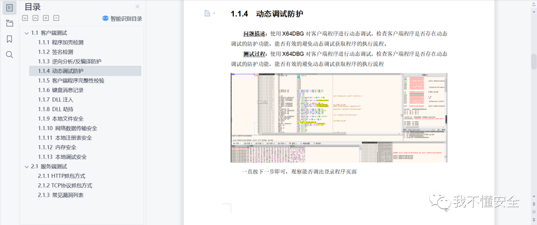 今天带来的内容主要介绍客户端测试的13个关键点,分别为加壳测试、签名校验、反编译保护、动态调试防护、客户端完整性校验、键盘消息记录、DLL注入、DLL劫持、本地文件安全、网络传输安全、本地注册表安全、内存安全以及本地调试安全