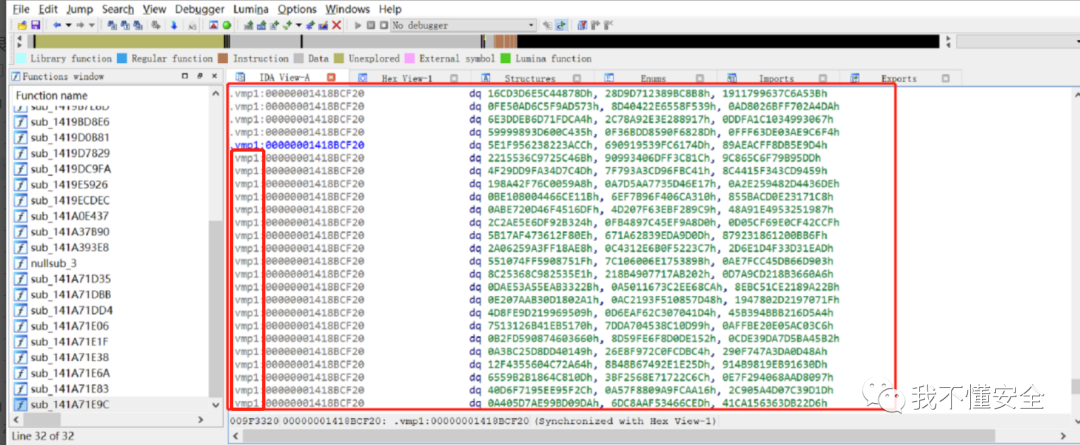其中动态调试那里,我说句实话,不会汇编的人是没法搞的,所以这里我只是简单的一带而过大家测试的时候可以不看,只要他的主程序加壳了,只要是三强壳(VMProject、Themida & WinLicense、Virbox Protector)即VMP、TMD、VP壳即可,特征其实就是使用IDA打开的时候看到的都是壳代码