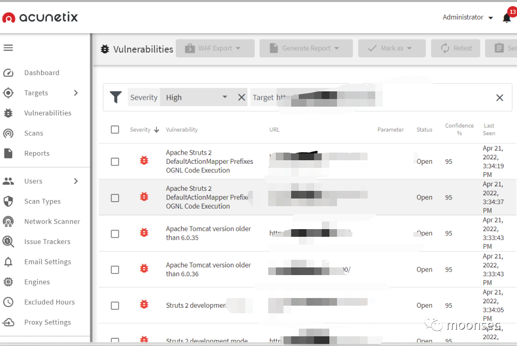 经过一番搏斗,大概了解了目标,接下来,又是各种摸索伦打,尝试各种,手工注入、密码爆破……无果…你以为我这就放弃了?没错是打算放弃了,当我正准备关机时,“一束光照在了avws上”我抱着试一试的心态,扫了一下目标站点,不扫不知道一扫吓一跳啊,比惊喜更惊喜的无疑是这个凸显眼前的Struts2漏洞,这确实是让我没想到的没想到。