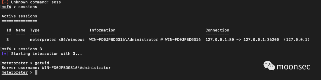 日常getuid可以看到是administrator权限,接下来,该想办法提权了,还是考虑到有360的原因很麻烦,这时候只能碰碰运气试试会话劫持了。